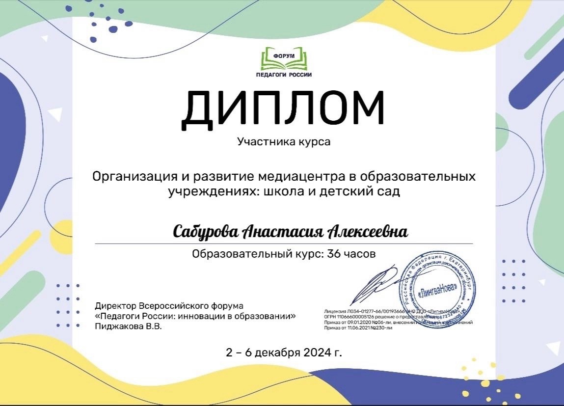 «Организация и развитие медиацентра в образовательных учреждениях: школа и детский сад», 36 ч. , 2024 г.