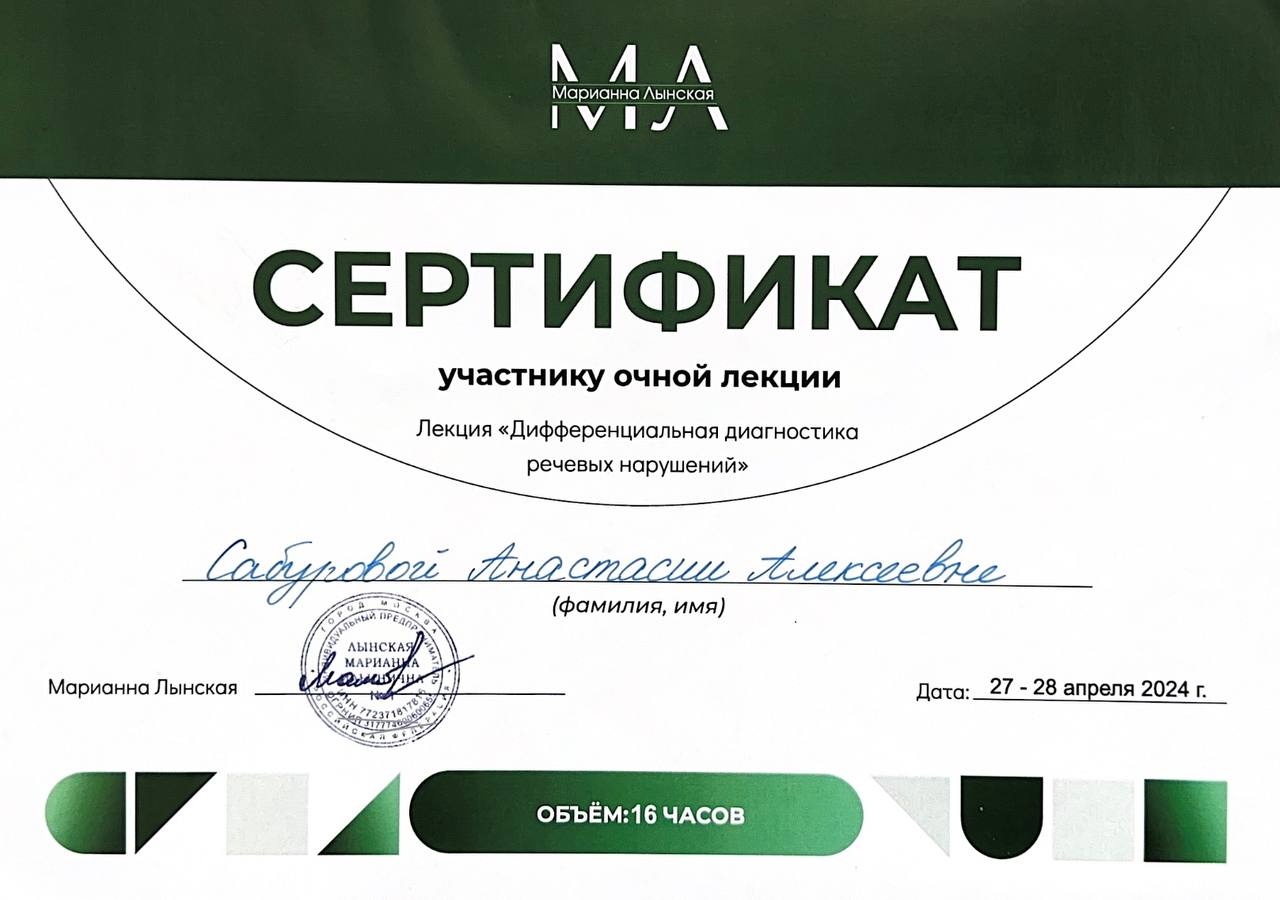«Дифференциальная диагностика речевых нарушений», 16 ч., 2024 г.