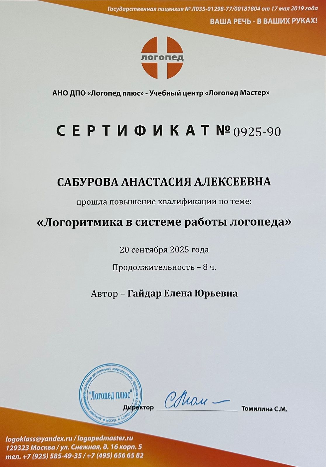 «Логоритмика в системе работы логопеда», 8 ч., 2025 г.